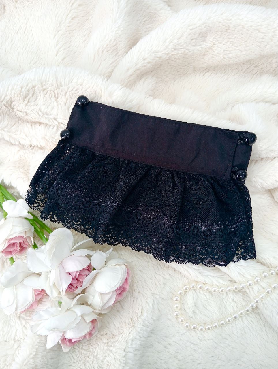 -عبارة عن قطعتين من الدانتيل الرقيق بأطوال مختلفة